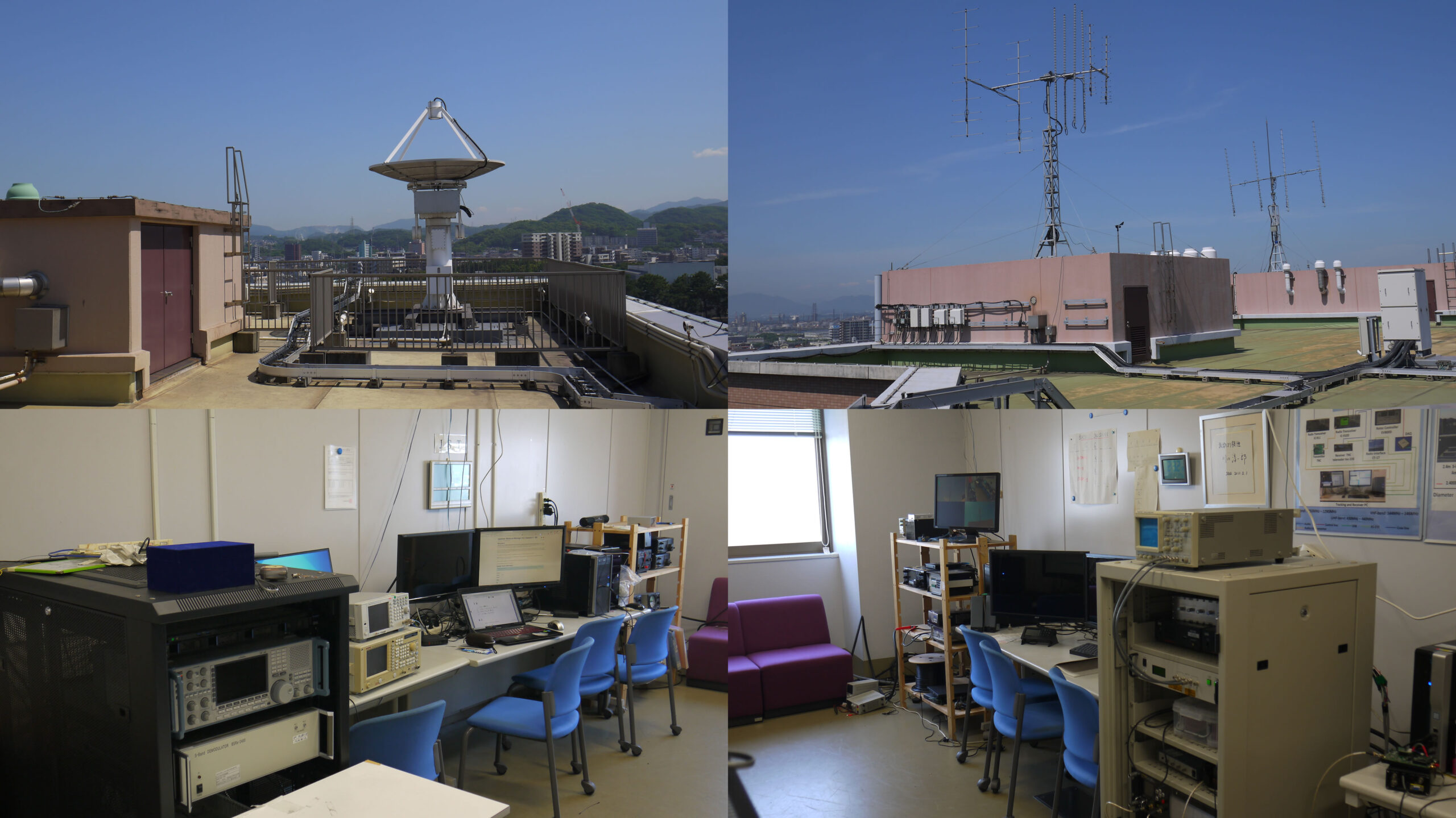 総合研究1号棟・8階及び屋上に衛星データの送受信を行う地上局とアンテナを保有しています。